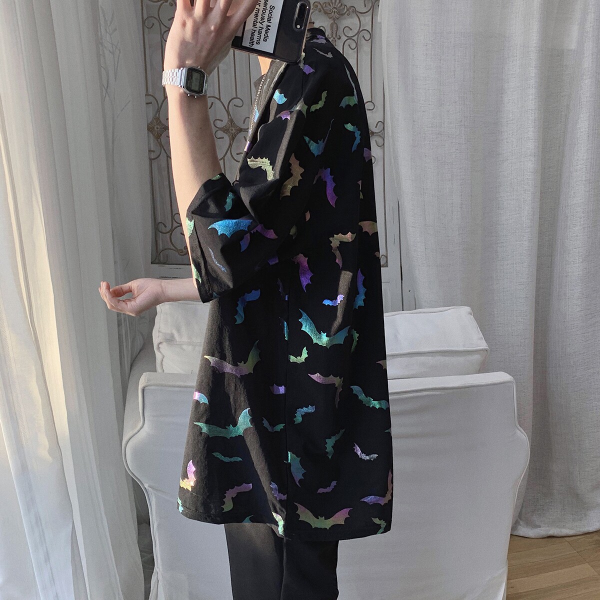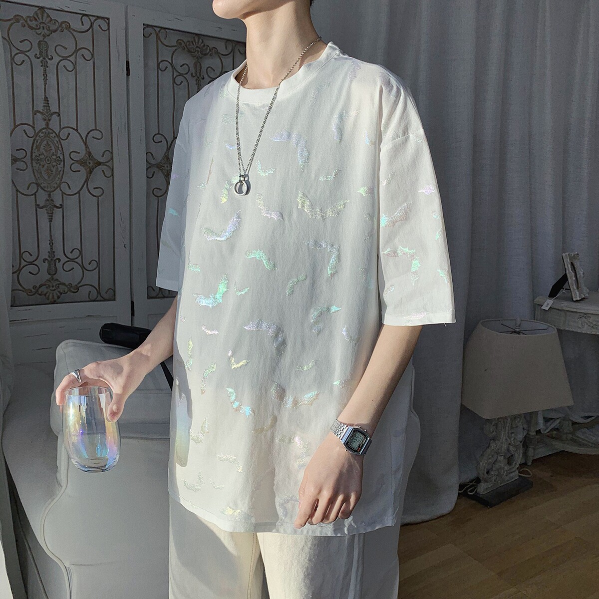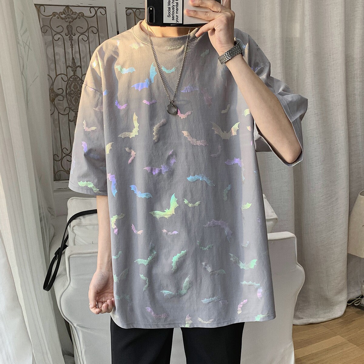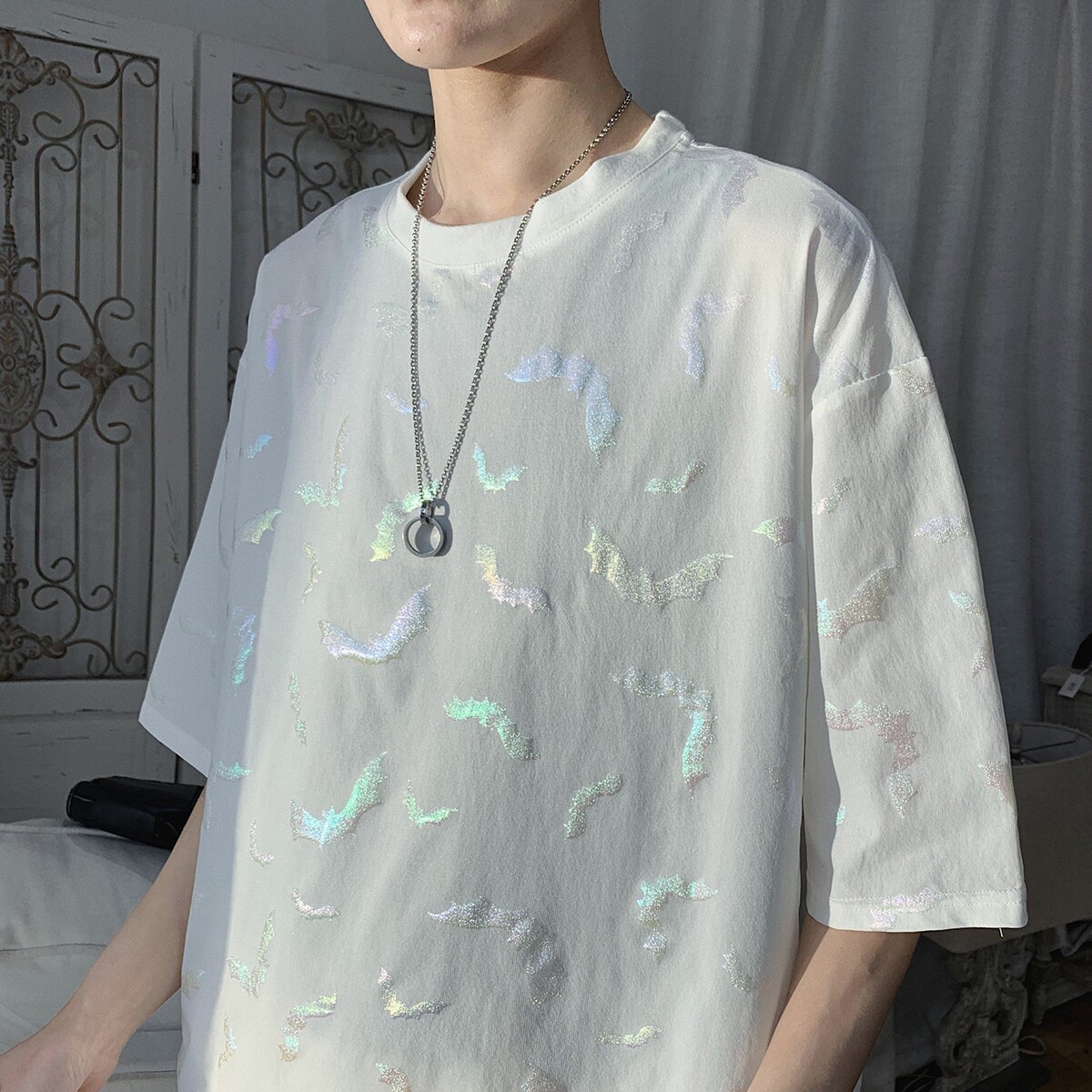 Bat T-shirt Male Short Sleeve Summer Trend Reflective Clothing Male Tide Signs port Wind Relaxed Half Sleeve Design Sensation