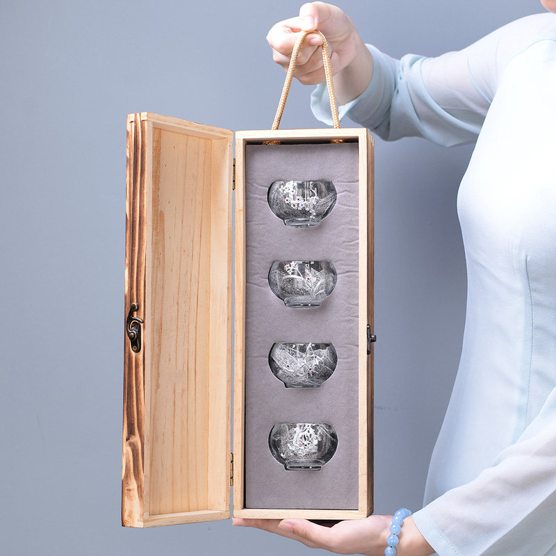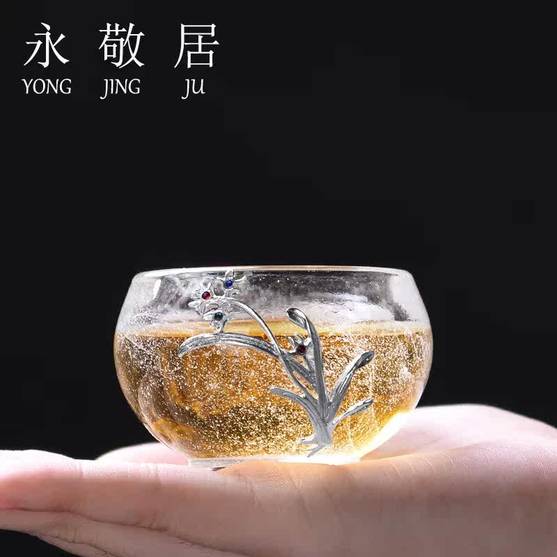 Evergreen and inlaid silver glazed tea cup Kung Fu tea drinking cup Master's cup thickened heat resistant glass jade porcelain tea set