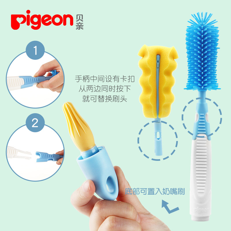 Shell pro bottle brush set bottle brush nylon sponge nipple brush 360 rotary brush bottle nipple clean brush