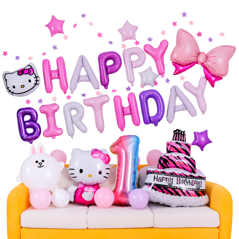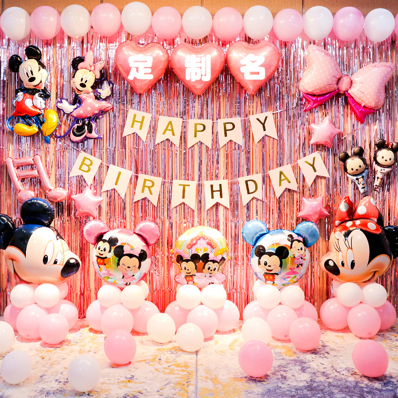 Happy Birthday Decoration Party Scene Balloon Children Baby Week age Placement Supplies Boy Girl background wall