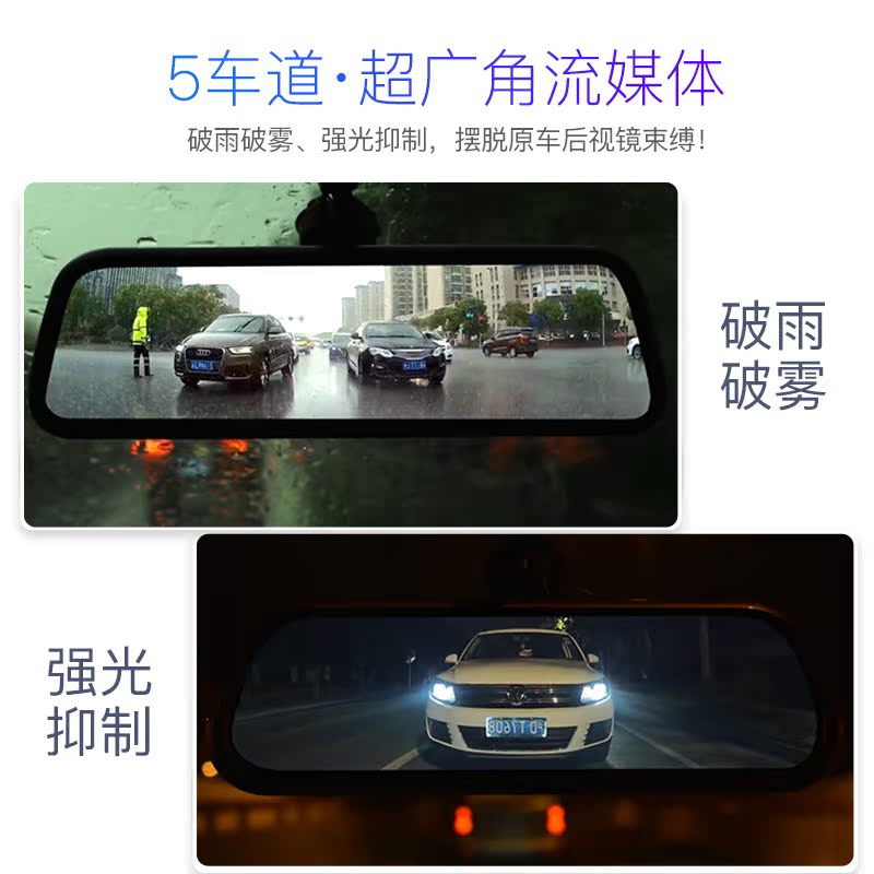 Connected mobile V98PRO full screen streaming media dual-lens wagon recorder cloud mirror intelligent rear mirror navigation