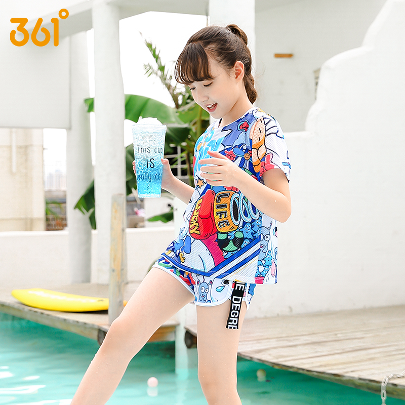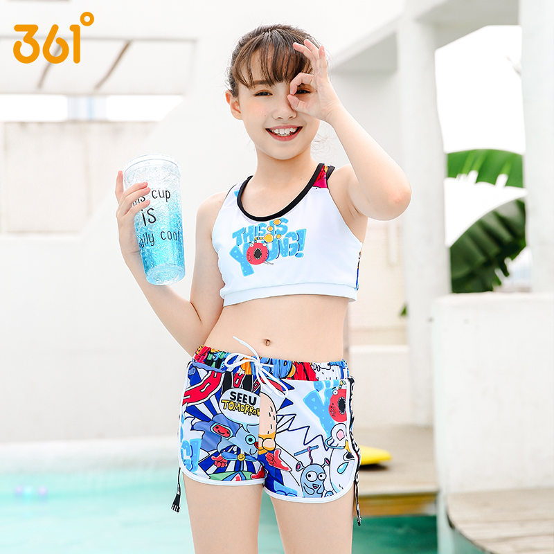 361 degree children's swimsuit girls split swimsuit teenage middle and older children cartoon beach swimsuit three-piece set
