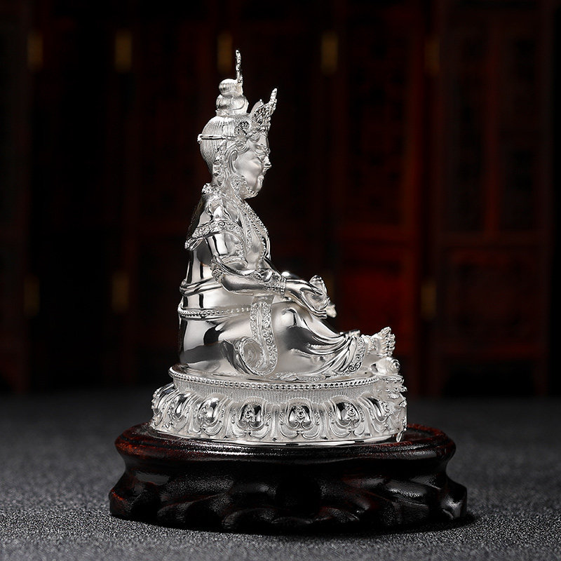 Tibetan Biography s999 Pure Silver Yellow Gold Lord Buddha Statue Zambala Home Worship 11cm