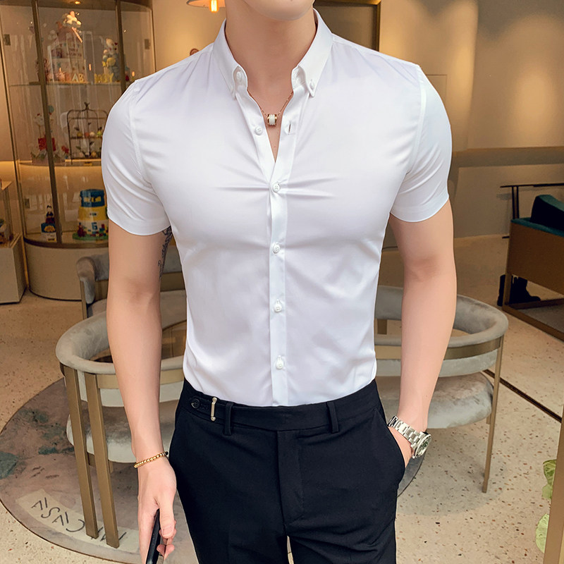 Summer New Seven-sleeve Shirt Men Short Sleeve Handy Cutting Cut-up Shirt in Leisure
