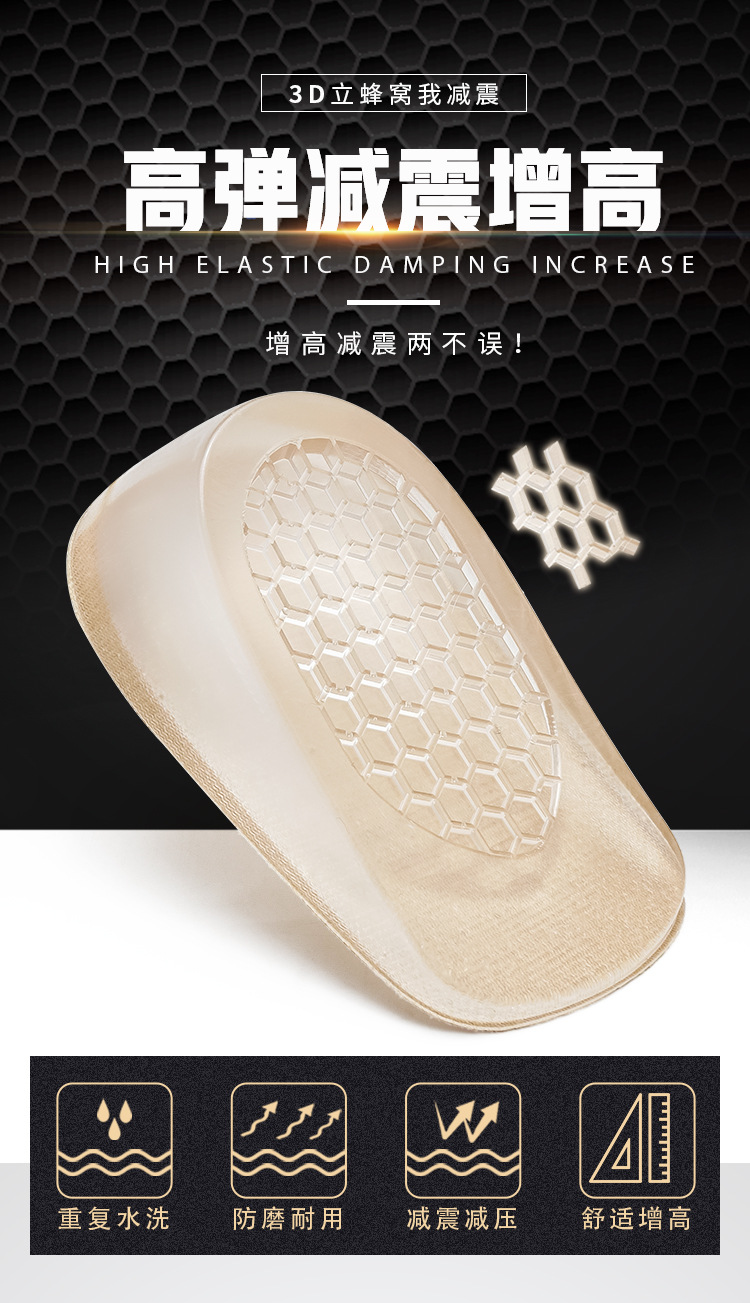Inner heightening insole men Xue Zhiqian with the same invisible silicone half pad women's comfortable not tired feet bionic heel soft