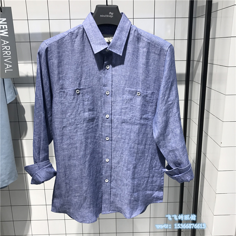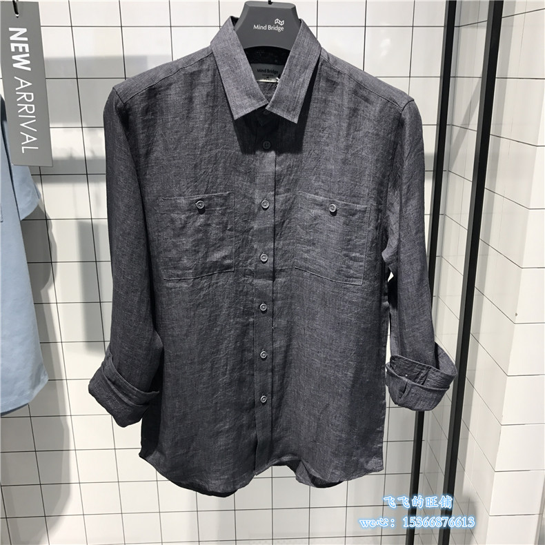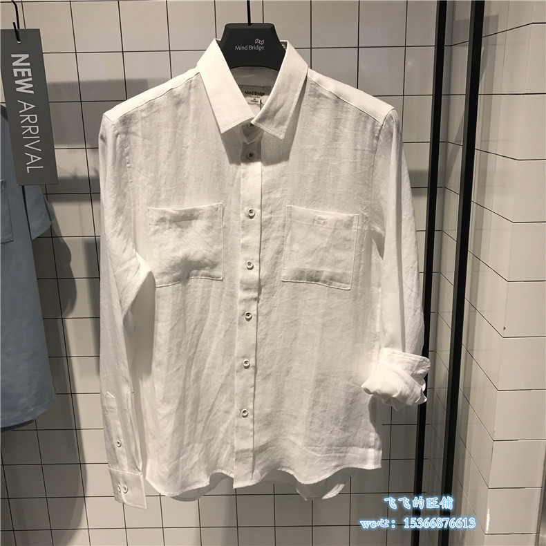 Mind Bridge men's spring and summer Korean version of fashion handsome trend linen long-sleeved shirt MRWS3102-698