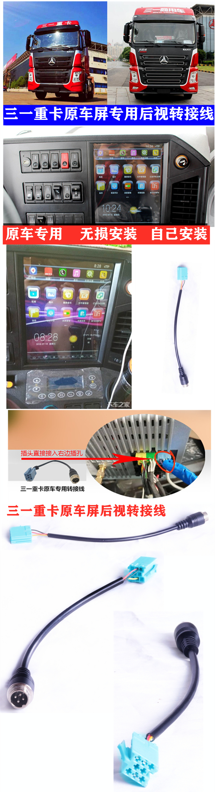 Undamaged installation of Trinity Heavy Truck Large Screen Vehicle Vehicle Vehicle Vehicle Cable Rear View Air Interface Conversion Line