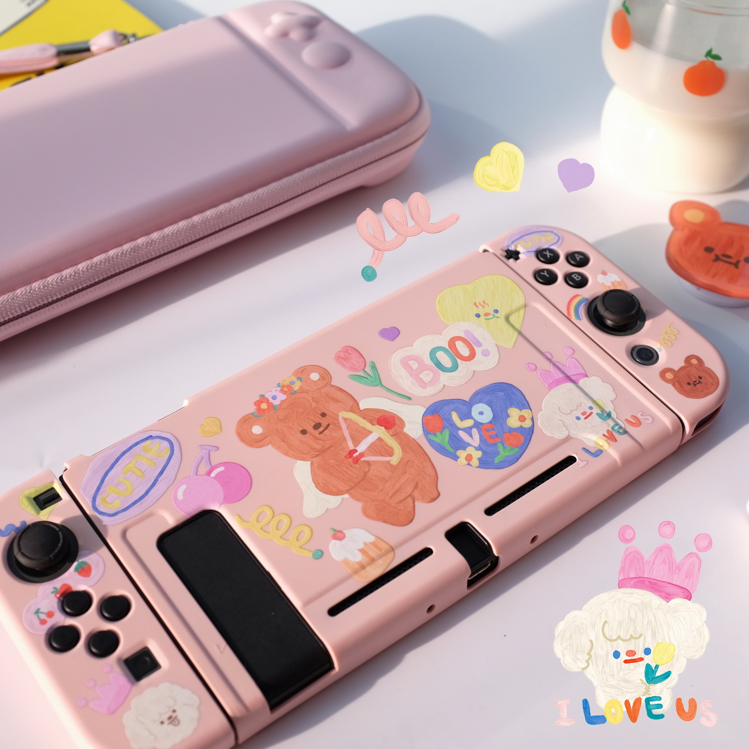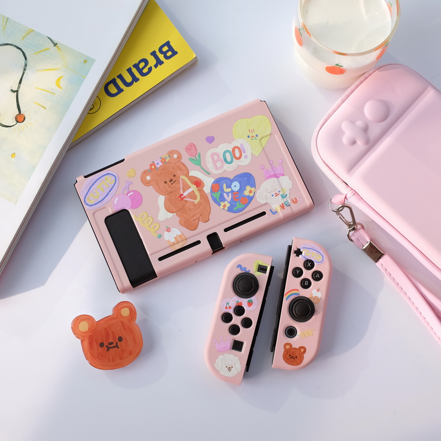 switch soft protective cover switch soft cover tempered film 4 cat claw cover pink can support screen storage bag protective soft cover 4 cat claw cover Lite version solid pink Li