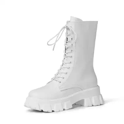 High-barrel Martin boots female ins nude boots handsome strap-up Slim motorcycle boots