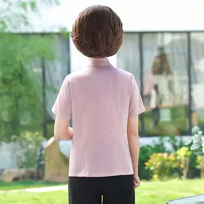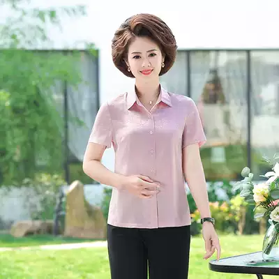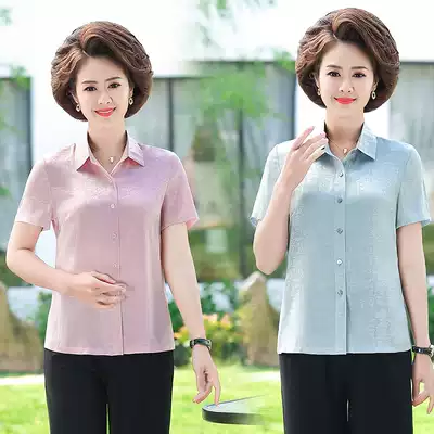 New female middle-aged and elderly silk lapel short sleeve shirt clothes mother chiffon summer shirt T top size