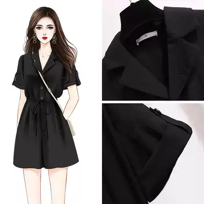 Black chiffon jumpsuit Women summer 2021 Thin Thin Thin wide leg overalls suit women's jumpsuit shorts
