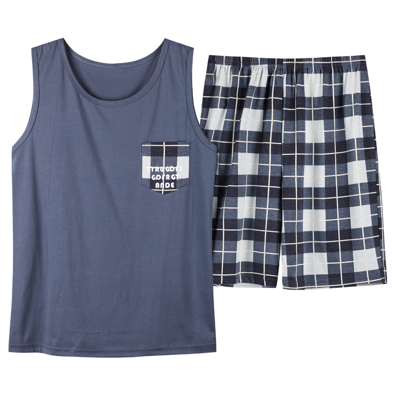 South Pole Men's sleepwear Summer pure cotton thin section Loose Large Size Vest Sleeveless Shorts Male Style Home Suit Suit