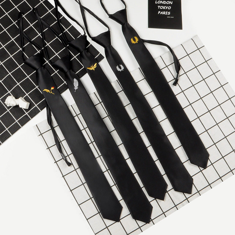 (Pull Rope Free of Embroidery) Zipper Rope With Men Fine Narrow Black Sloth Small Tie Shirt Accessories Student Tide-Taobao