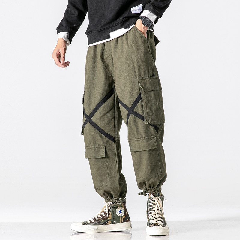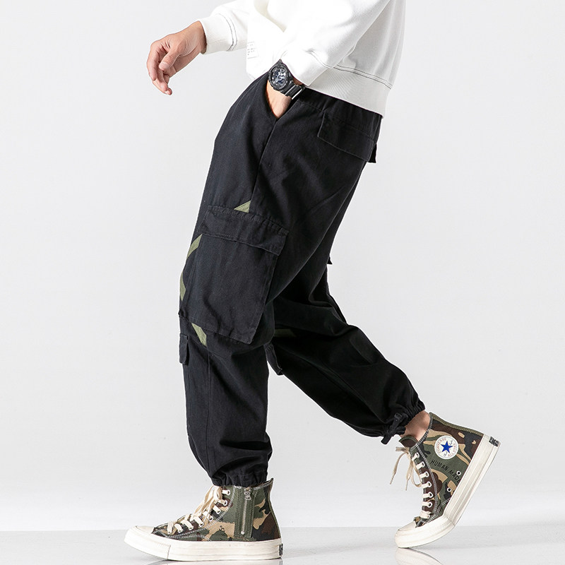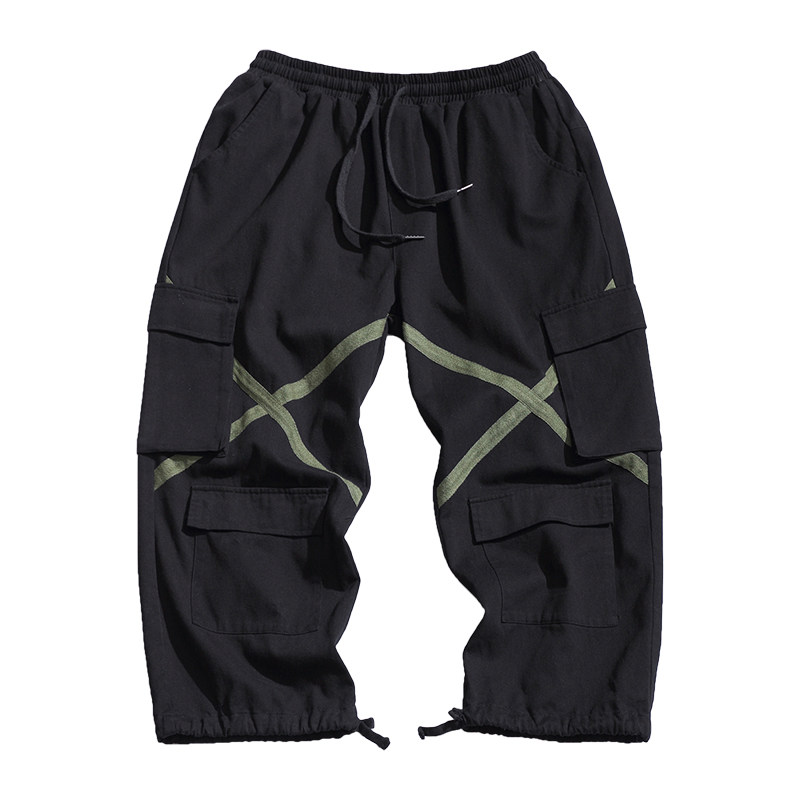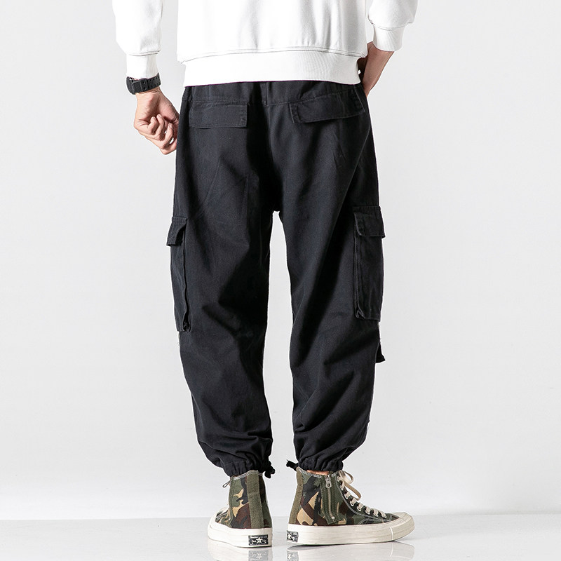 Japanese cross-cranker pants men tide large size multi-pocket casual pants fat straight tube pants