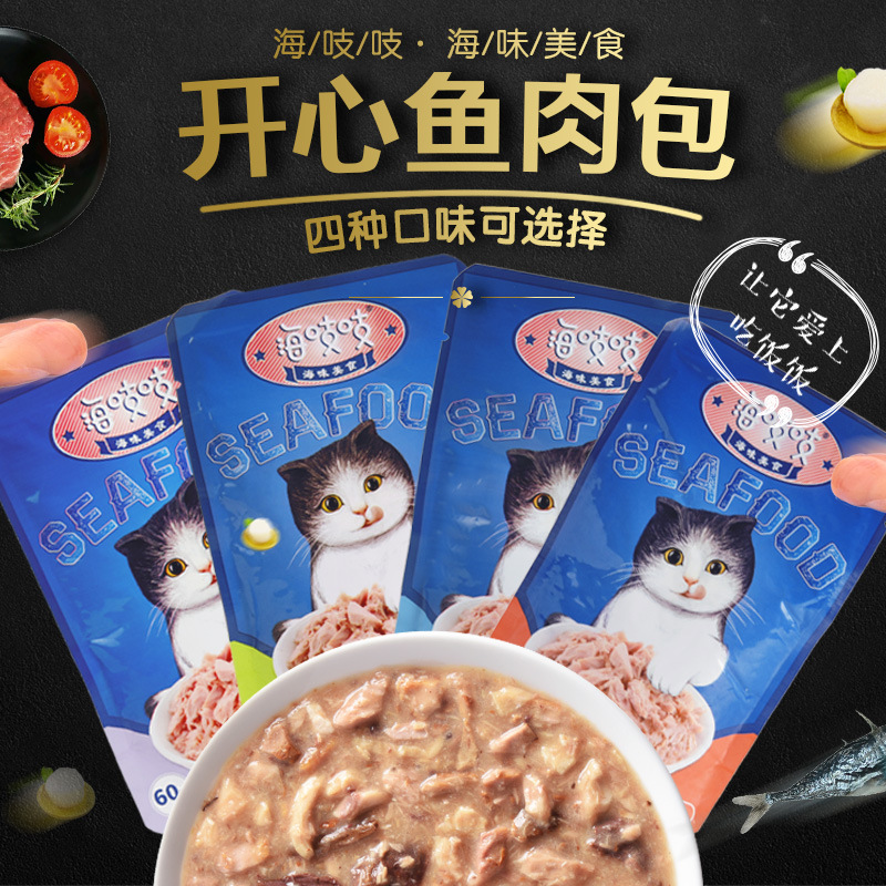 Happy fish bag cat strips cat snacks adult cat kitten wet food canned wonderful fresh bag fattening hair cheek mixed taste
