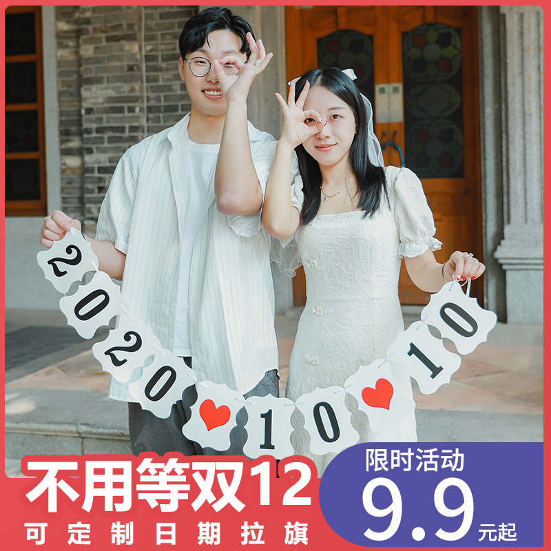 Wedding photo props pull flower decoration outdoorwedding flag customized digital date letter wedding room layout suite