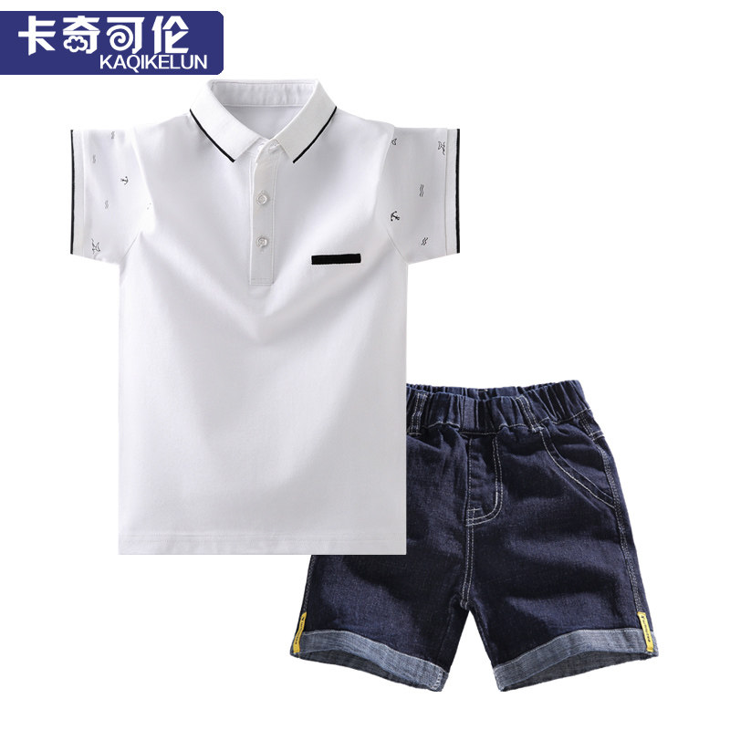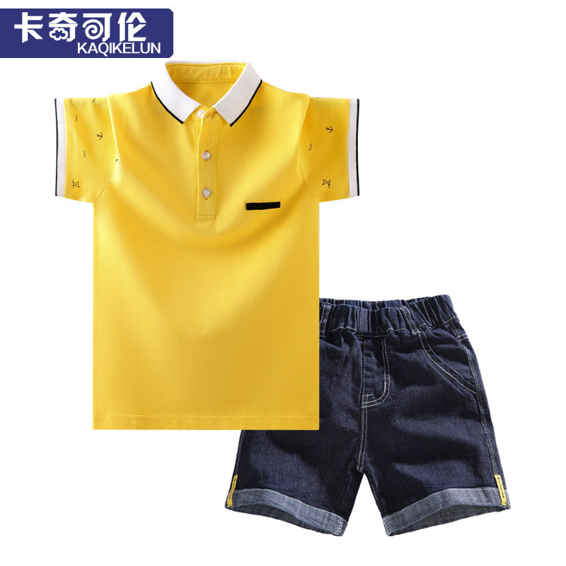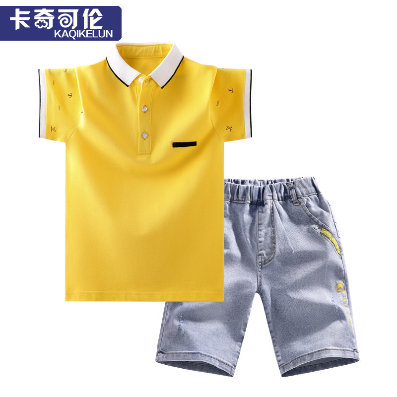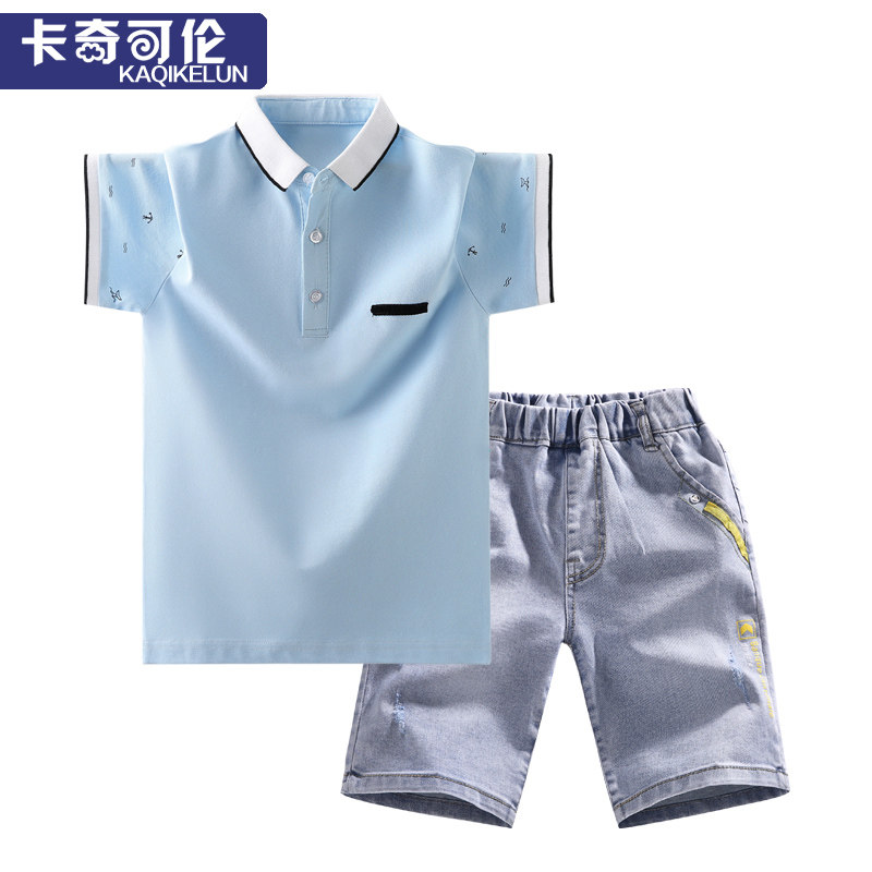 Boy's summer clothing suit 2022 new CUHK Tong Shuai Casual Short Sleeve Children Summer Boy Foreign Pie Polo Shirt