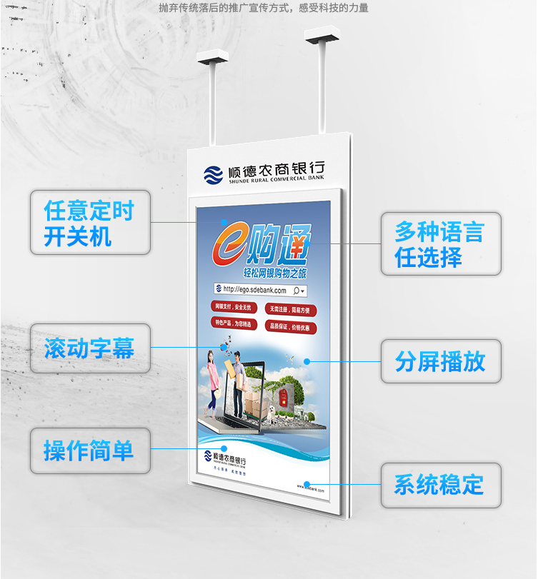 Bifacial hanging advertising machine Smart banking shop window hoisting hanging double screen Internet bifacial poster advertising machine