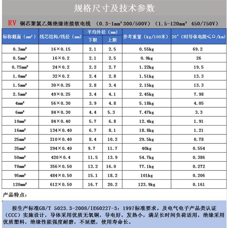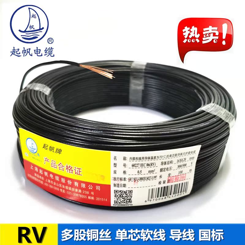 Starting sail wire RV 5 0 0 75 square single core multi-strand soft wire national standard pure copper core package detection