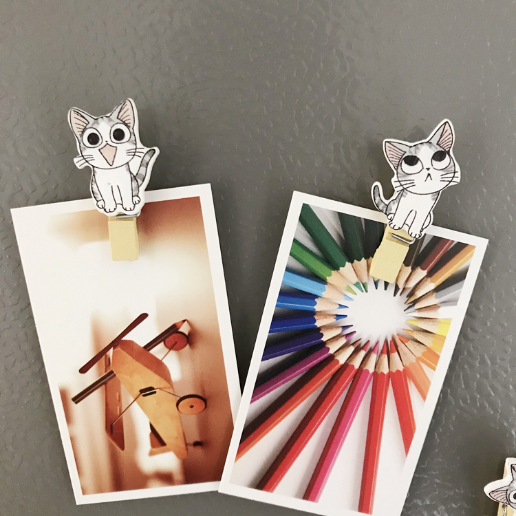 Cartoon wooden clip magnetic refrigerator sticker whiteboard photo wall photo tile office file receipt clip tile