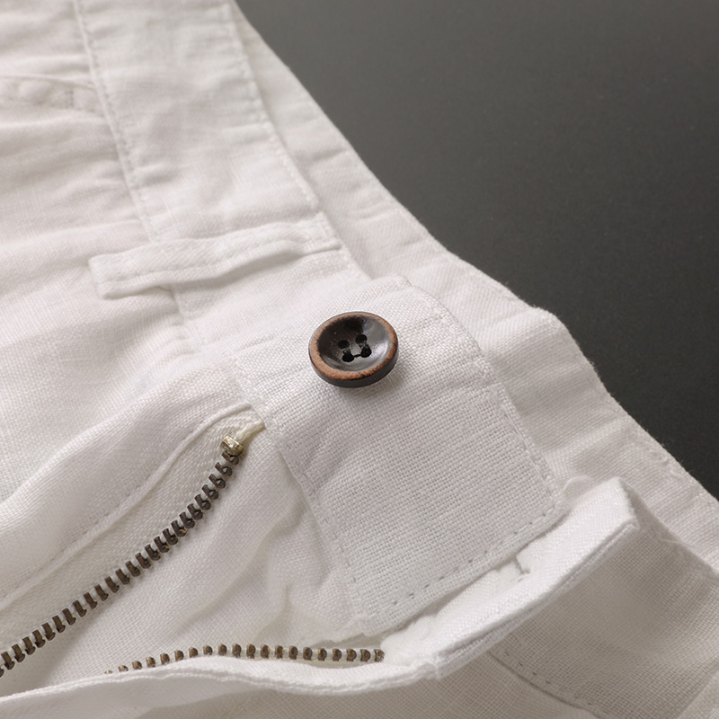 Day Faculty Leisure button Summer Thin style Breathable Straight Drum Linen Men Long Pants 100 Hitch Pants Pants Casual Pants E