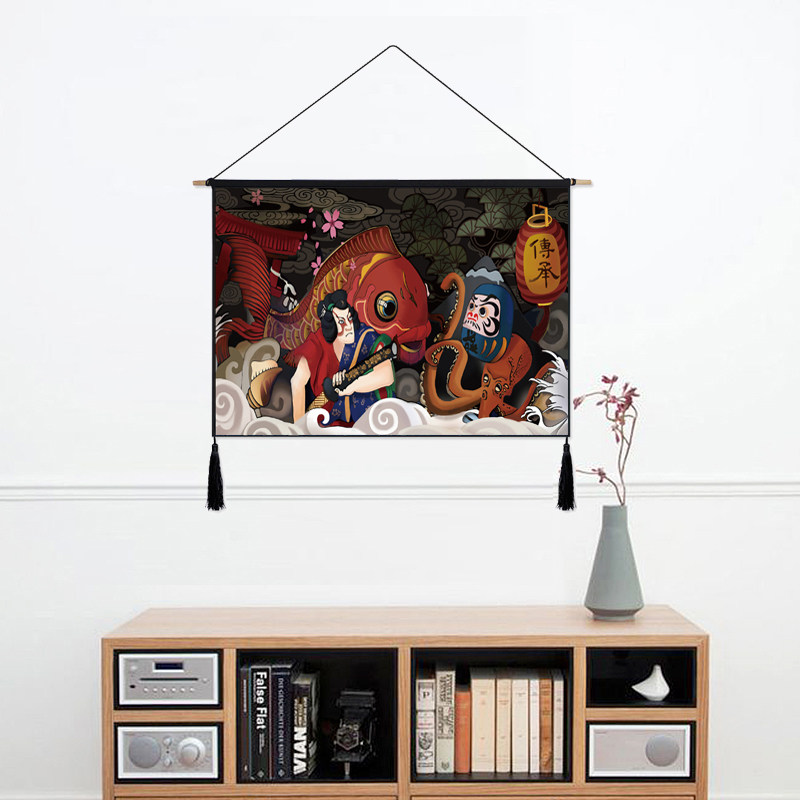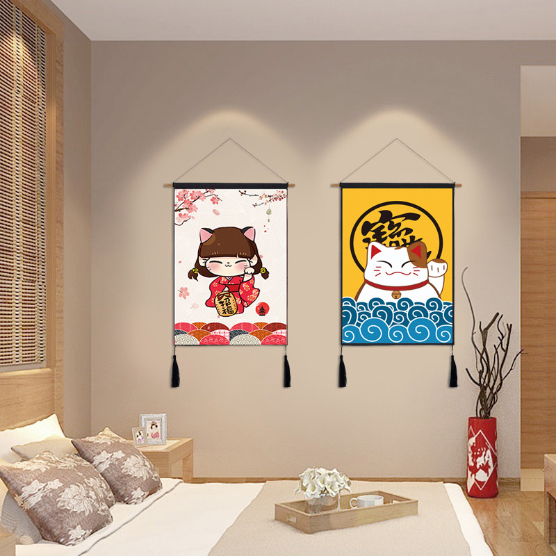 Day-style cloth art hanging painting Living room Xuanguan Decorative Painting sushi Shops Residence Wine Estate Property Cat Hung Flag Tapestry Folk Hangu