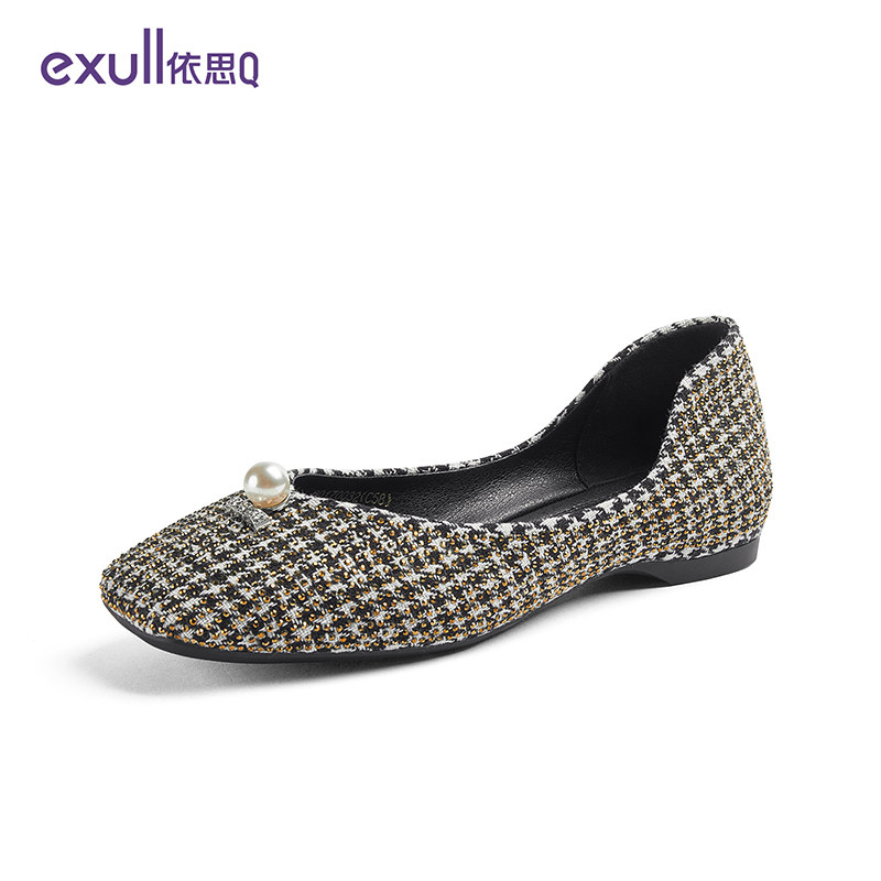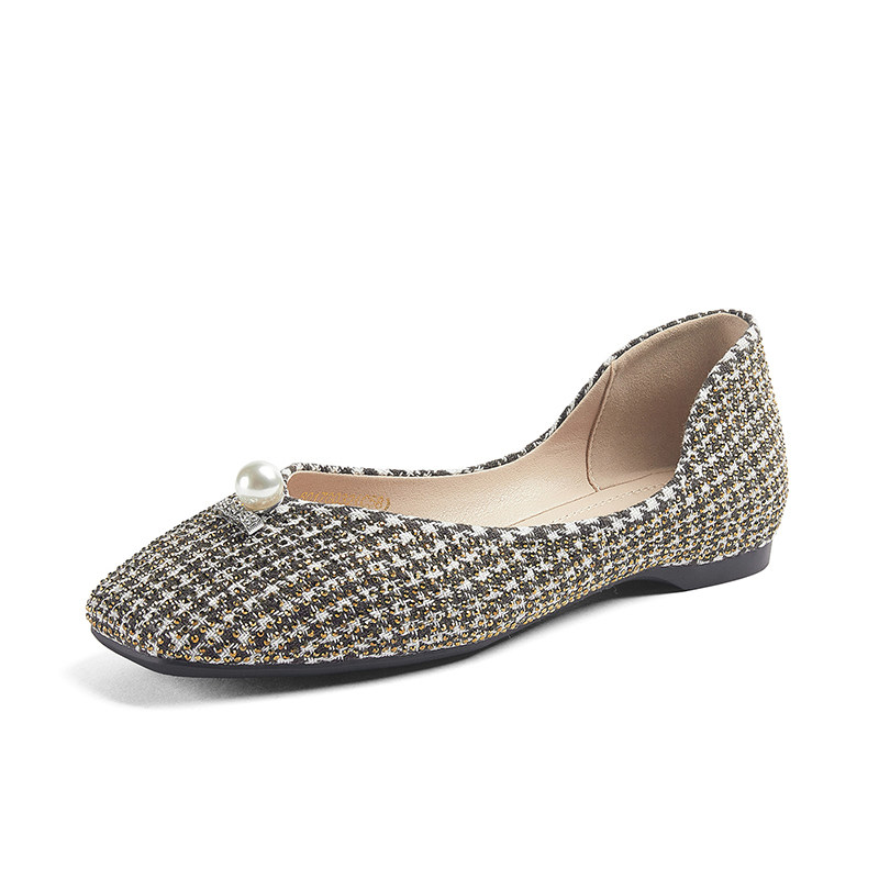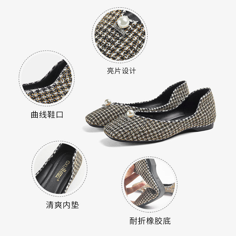 Yisi q2020 autumn new retro square shoes women fashion houndstooth milk shoes shallow flat shoes women