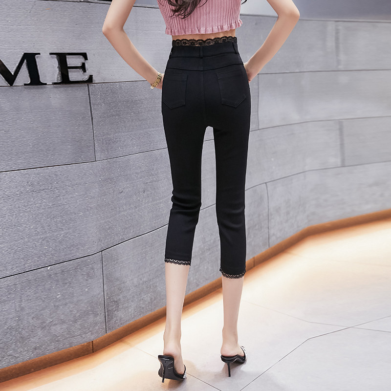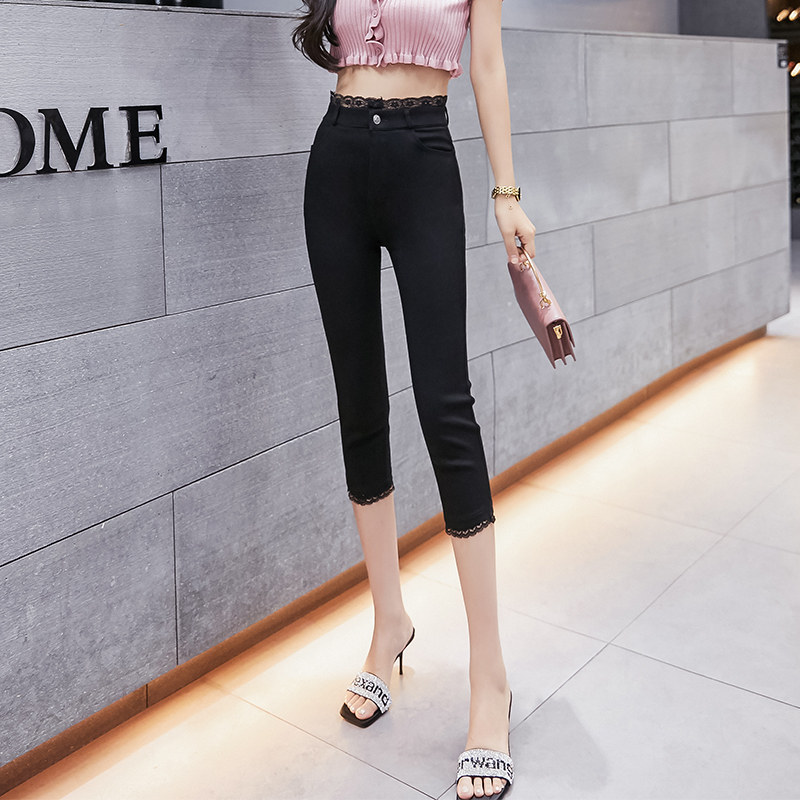 Seven-point underwear, women's outer wear, summer thin section, Korean version, casual high-waisted, thin, tight-fitting, eight-point lace stitching cigarette pipe pants
