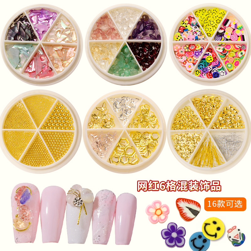 Net red popular new nail jewelry shell pieces mixed with rivets pearl rhinestones as nail jewelry
