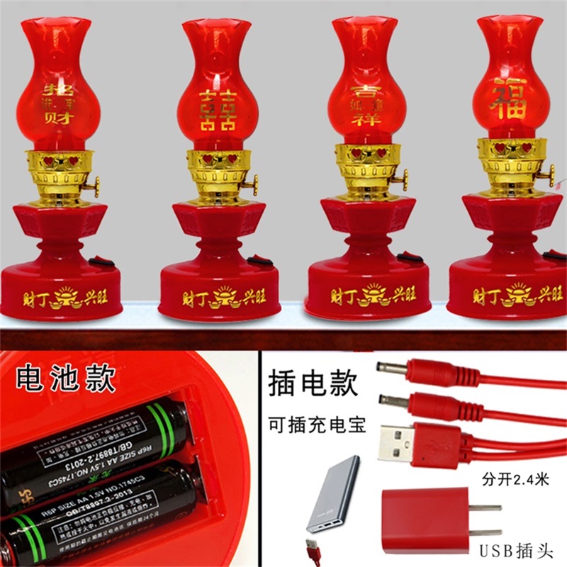 Plug in and enter the house, LED kerosene lamp, candlestick, children and grandchildren, bedside Changming, newly married room lamp, a pair of double happiness lamps