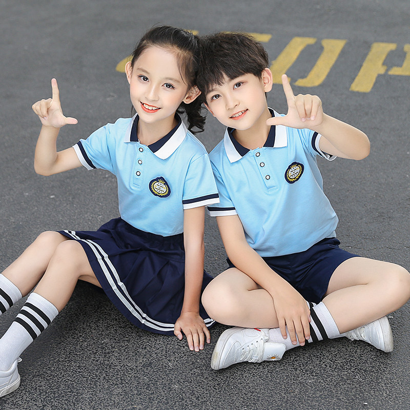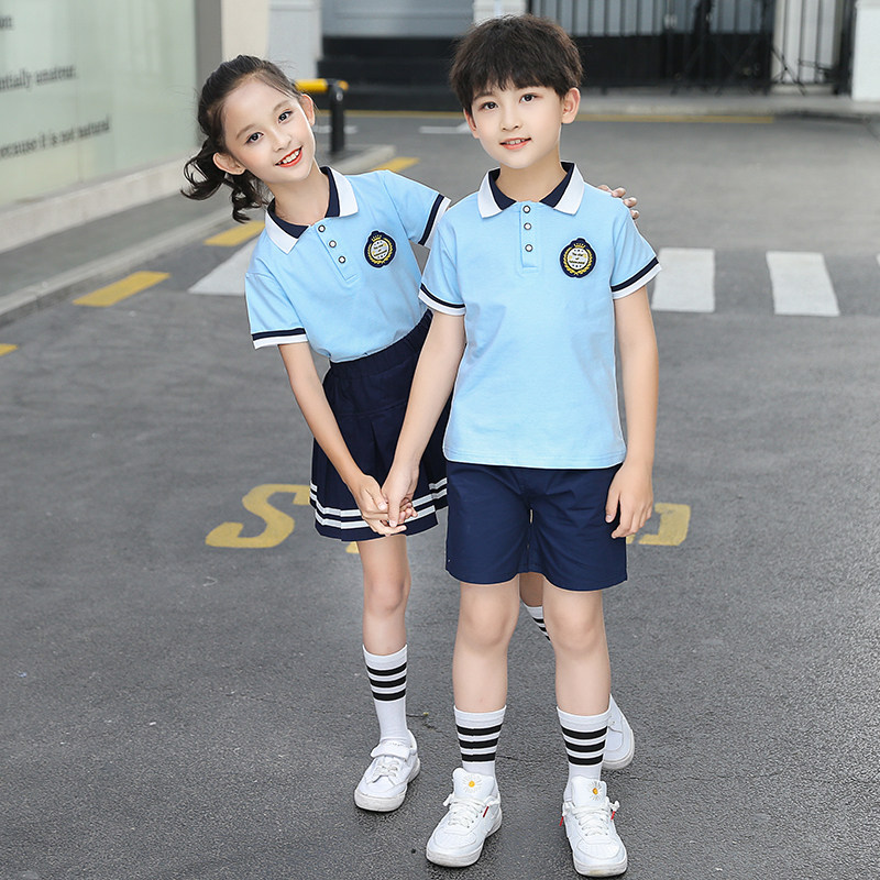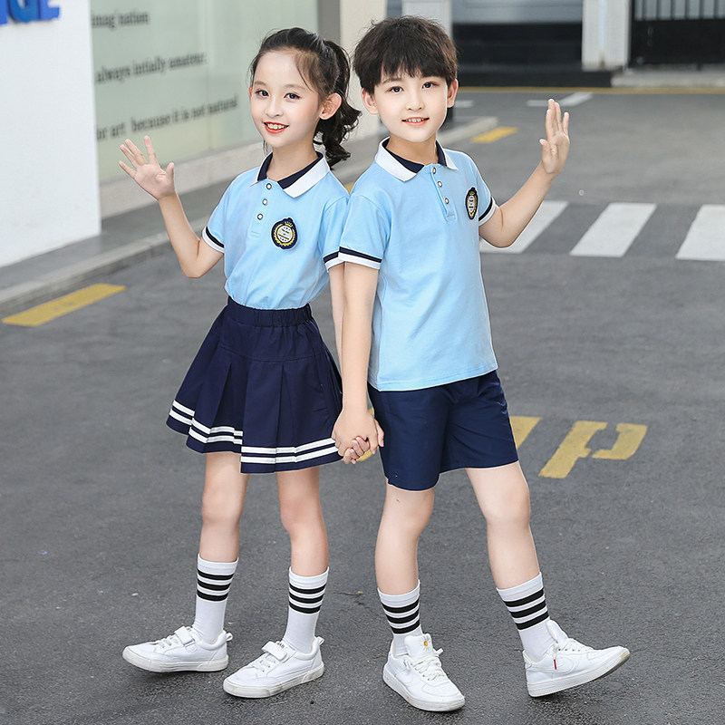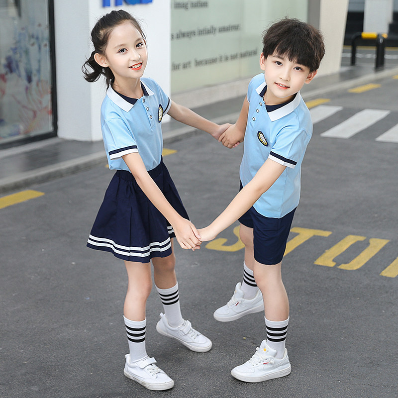 Kindergarten uniforms, summer clothes, British college style primary school uniforms, summer short-sleeved cotton children's first-grade class clothes