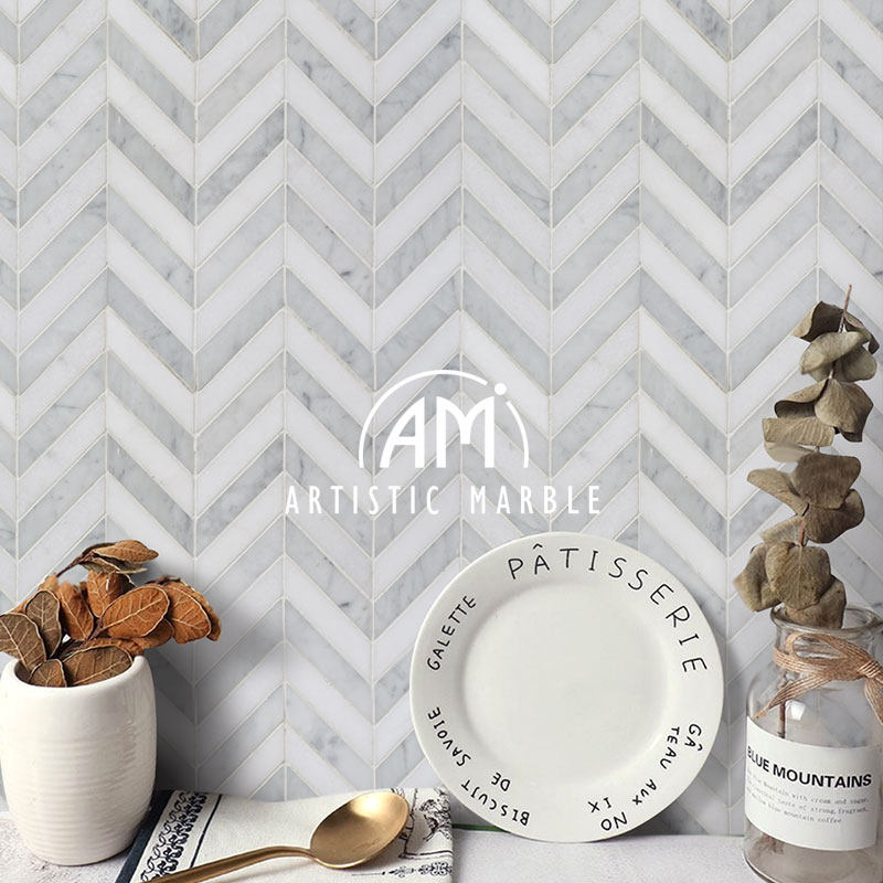 Natural Marble Material Mosaic TV Bathing Area Background Wall Fish Bone Makeup Room Kitchen Non-slip Entrance Tiles