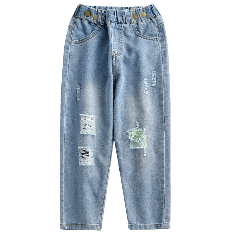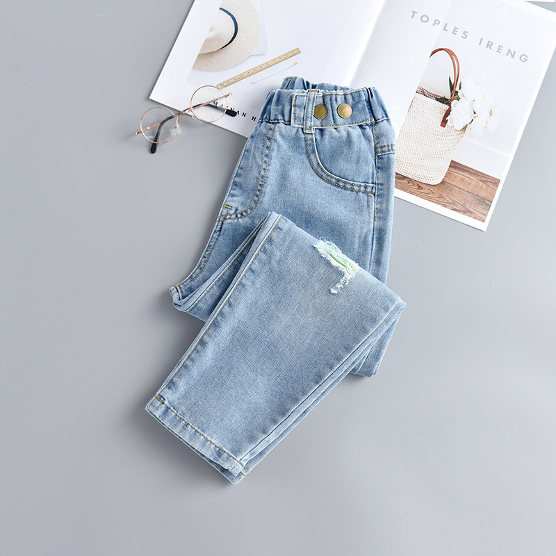 Girls pants spring and autumn 10 autumn 2021 new children's female 13-year-old middle child 14 ripped jeans 12