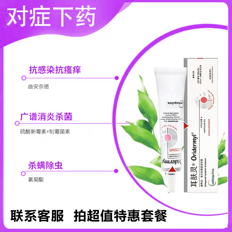 Ear skinling cat ear mite ear drops pet otitis media dog ear disease black and itching French Weilong oridermyl