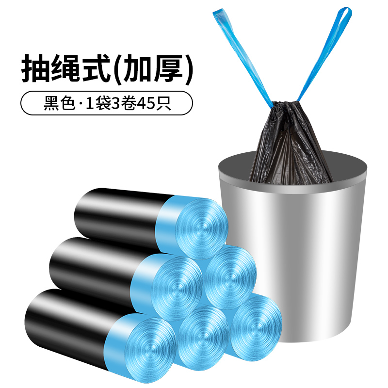 Home Garbage Bag Pumping Rope Vest Portable Thickening Affordable plastic bags Grand size black Kitchen Garbage Bags