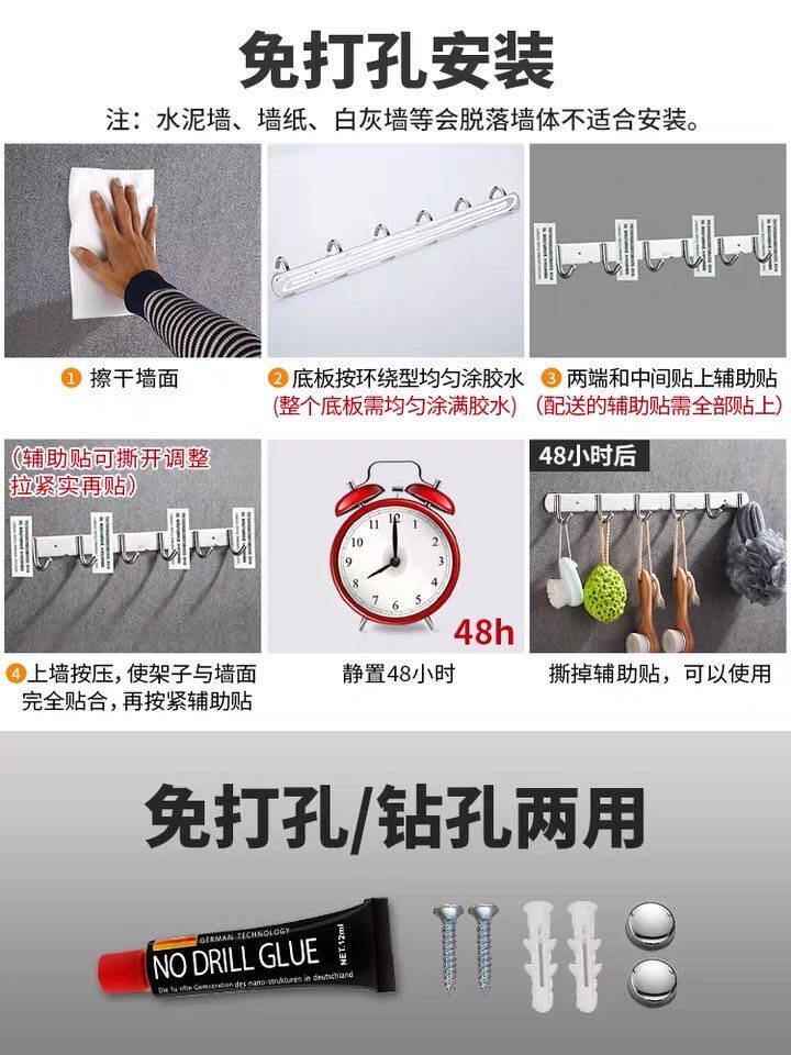 304 hook wall hanging hanging hanging stainless steel hook kitchen hook clothes hook clothes hook without punching bond