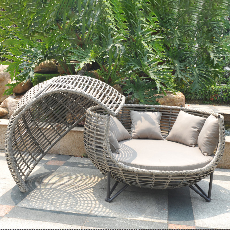 Outdoor deck bed sofa balcony Nordic leisure courtyard rattan sofa round bed villa outdoor rattan deck chair rattan chair