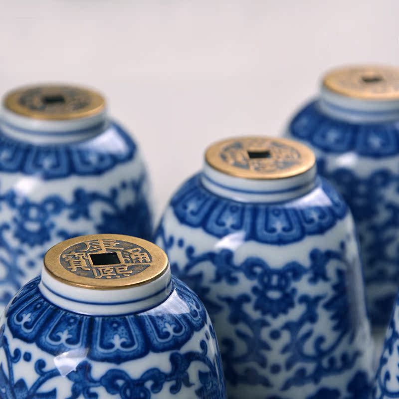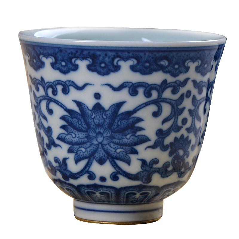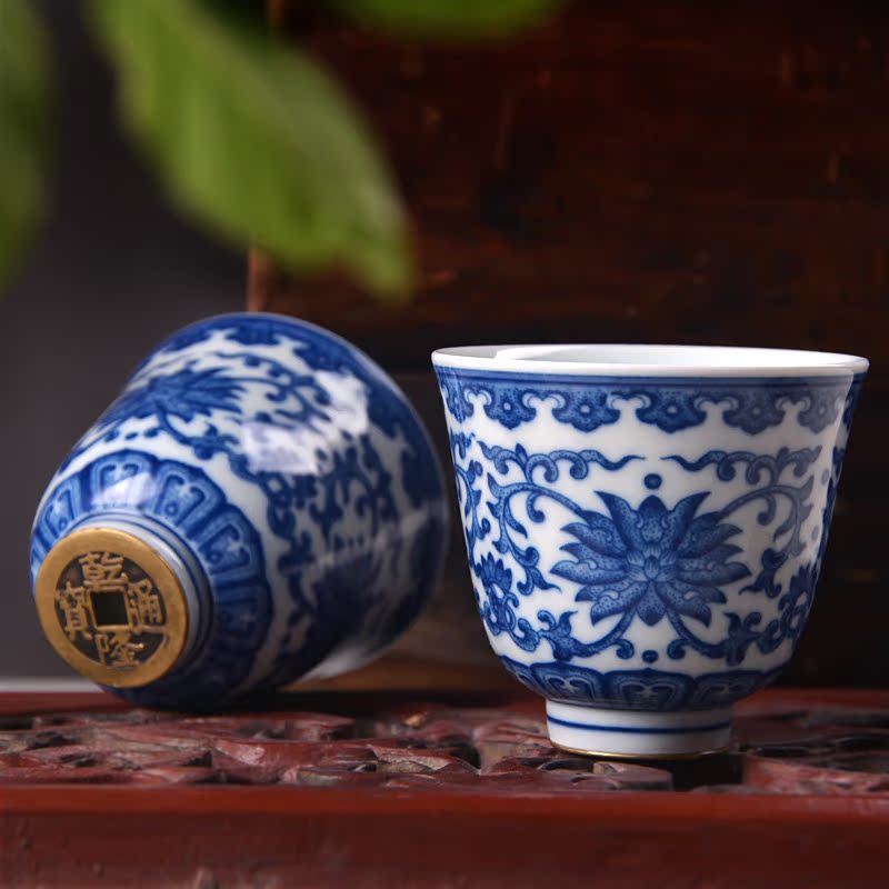 Five Emperors Bronze Money Kung Fu Tea Cup Tasting Cup Handpainted Imitation Ancient Green Flower Stalking Lotus owner's single cup Jingdezhen tea set