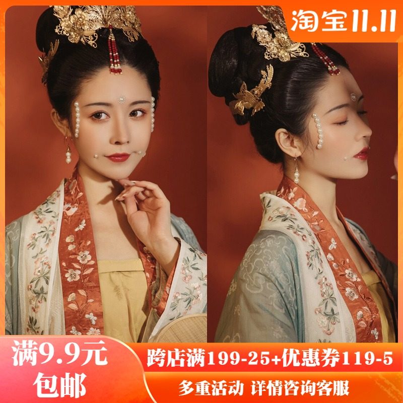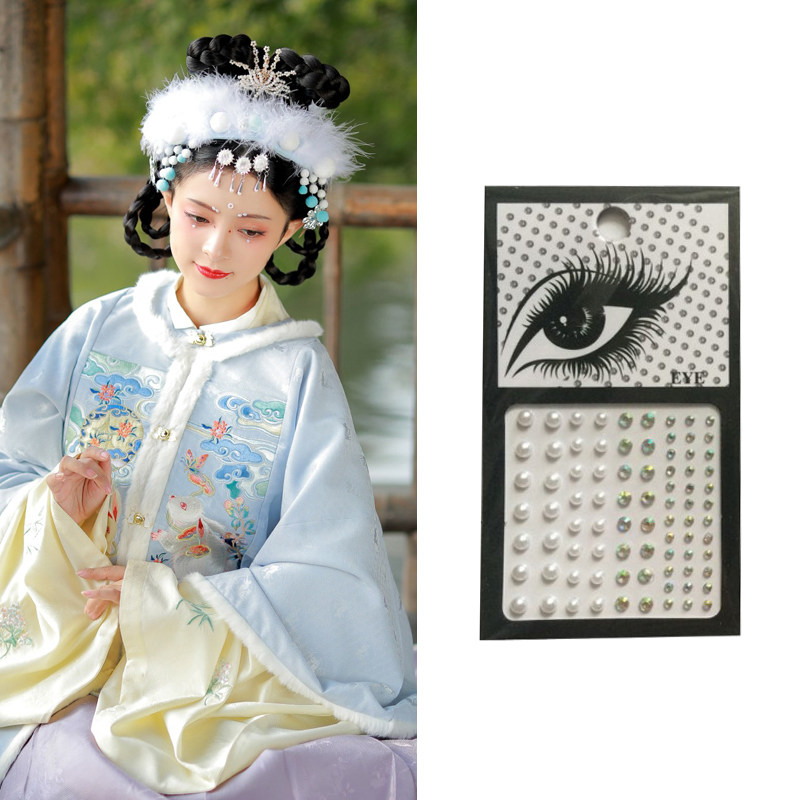 Flowers Narrow Brow Brow with Han suit Ancient Clothing Pearl Clear Flat Music Forehead Patch Crystal Forehead Face Corner Drop Tears Makeup Water Drill Fairy Gas
