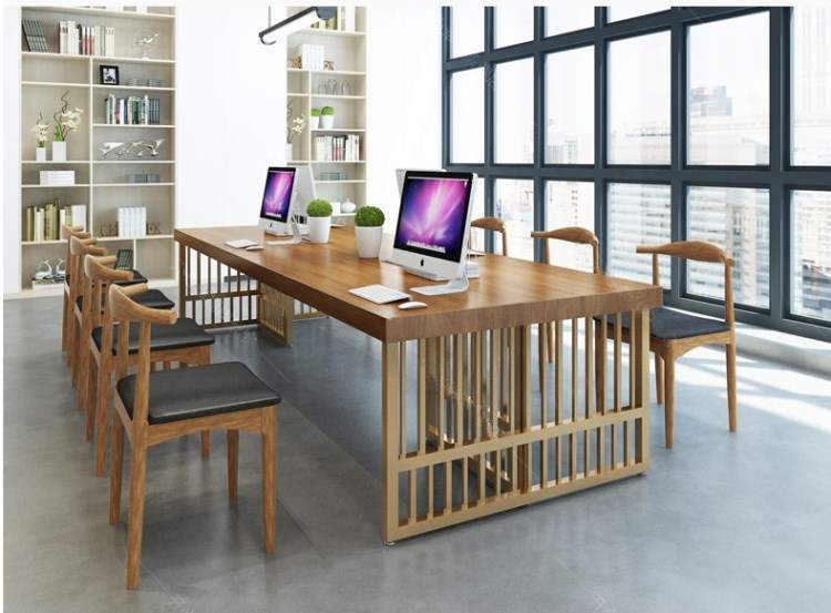 loft solid wood meeting table log long table strip table Nordic desk room in negotiation for computer desk chair combination