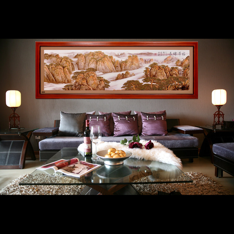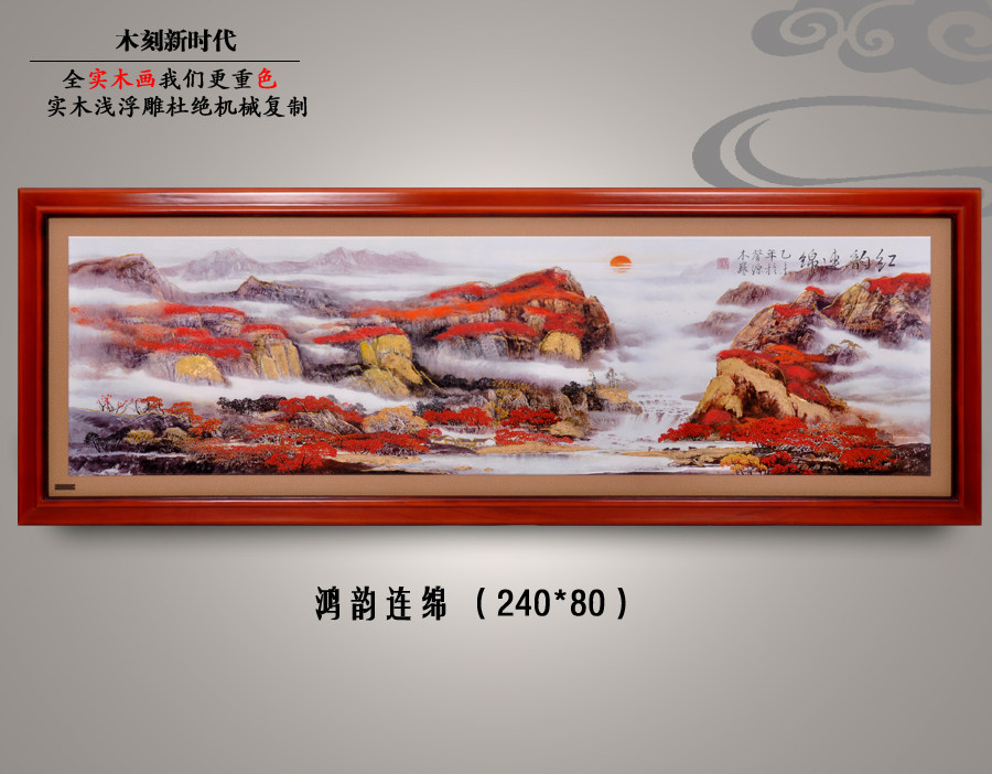 Solid wood woodcut embossed decoration painting technique gold leaf painting Hongyun When head new Chinese red wood sofa matching painted solid wood home