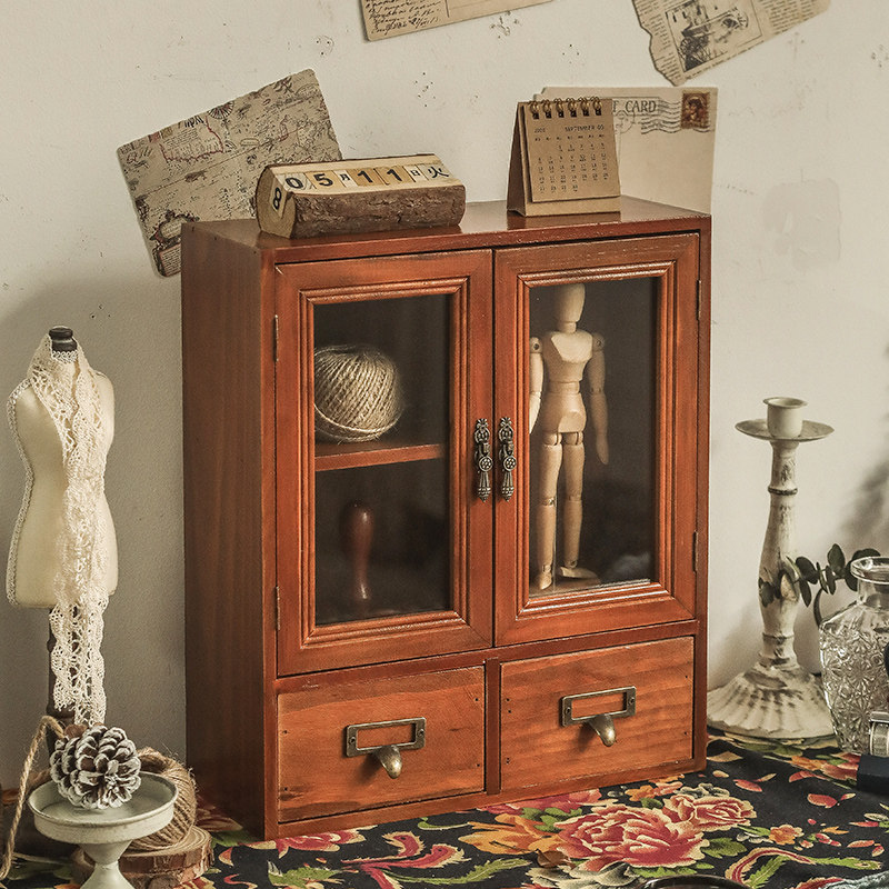 Retro desktop containing box solid wood perfume mug containing cabinet Cosmetics Office Wooden Desk Shelf