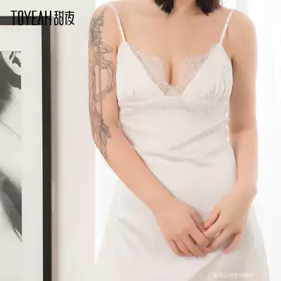 Sweet night V eyelash lace nightgown thin silk pajamas fake pure hot sulking SM SM free of temptation big chest sexy
