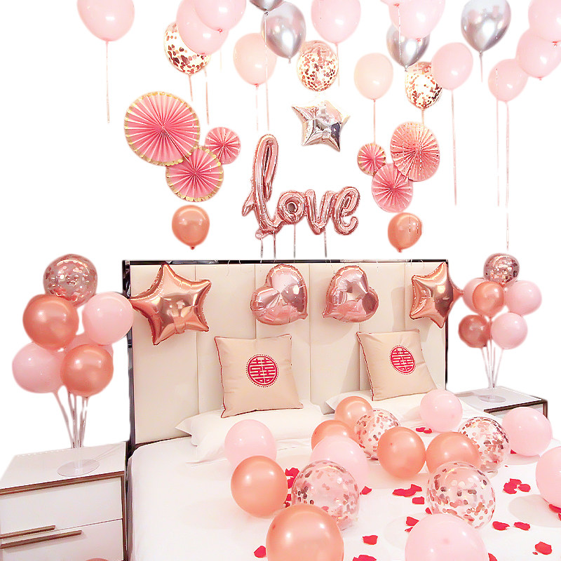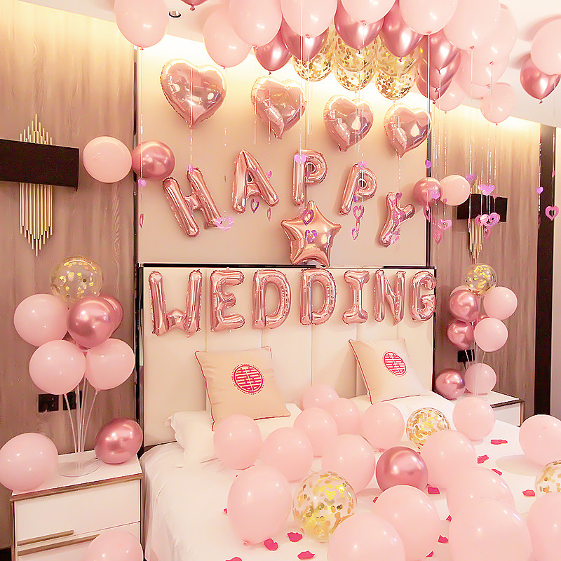 Bedroom balloon engagement wedding room layout decoration set ins wind European style wedding celebration supplies complete set simple atmosphere
