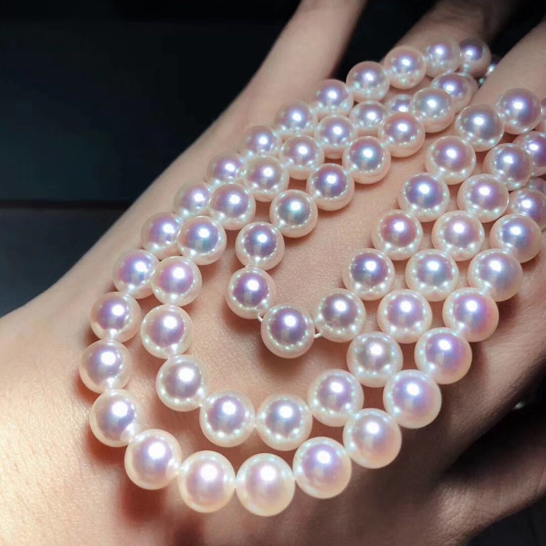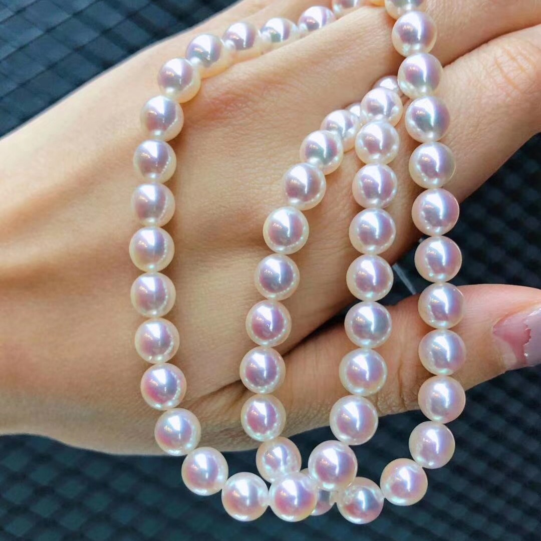 Japan Akoya day female pearl necklace quality mirror light positive round beaded Aurora small bulb