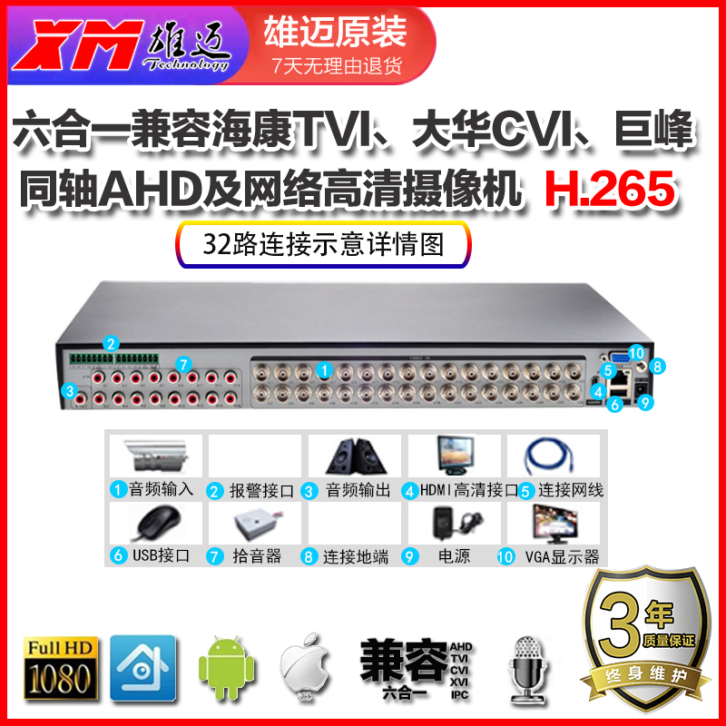 Xiongmai Jufeng 32-way 5 million coaxial AHD hard disk recorder monitoring hybrid HD dual-disk DVR original