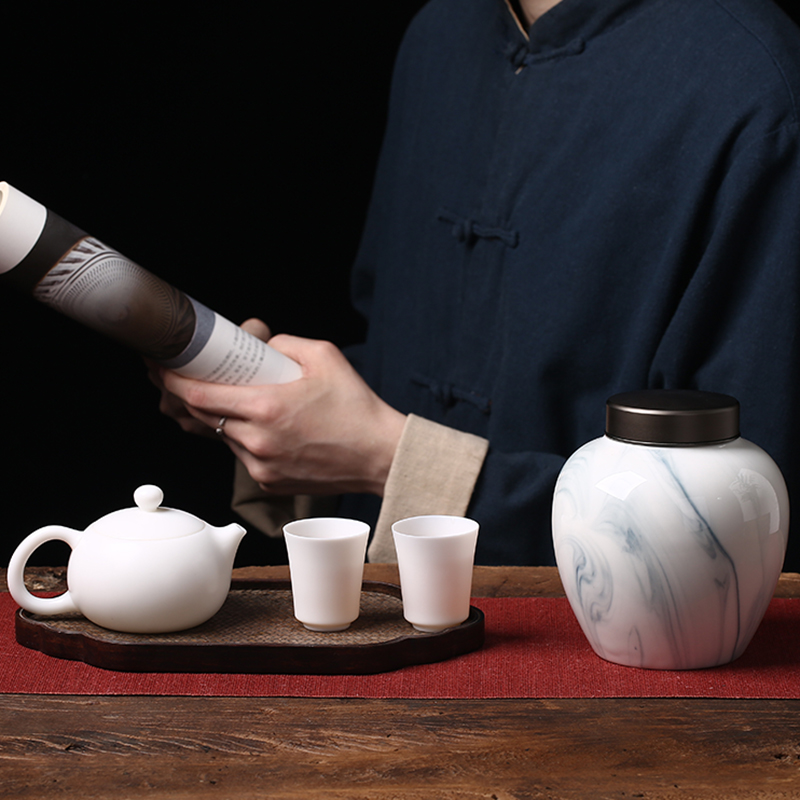 White porcelain tea cans portable size household sealing canned tea ceramic tea ceramic tea leaf storage tank