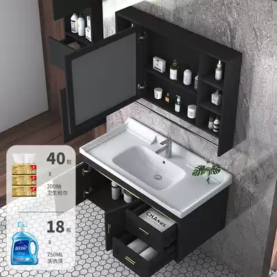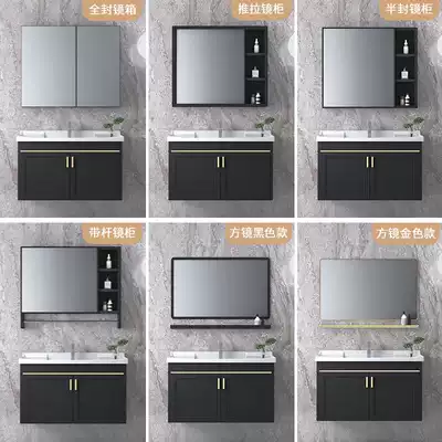 Space aluminum alloy bathroom cabinet small apartment powder room vanity modern simple hand washing face basin cabinet combination