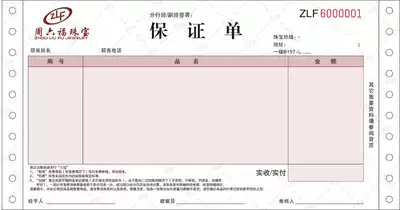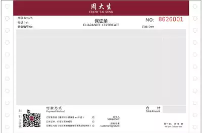 Custom-made printing thickened single jewelry China gold six six lucky weeks Daihatsu gold six lucky jewelry store bills