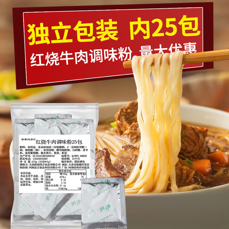 Red Burn flour seasonings Red Cooked Beef Noodle Sauce with Beef Broth Powder Boiled Noodles Seasoned Powder Pack 25 Packets